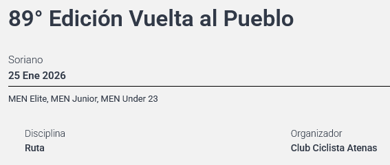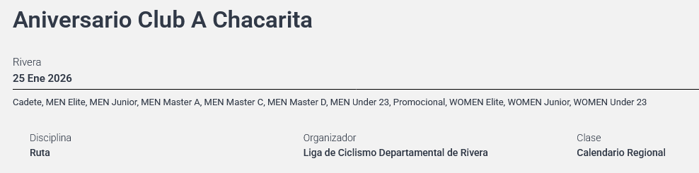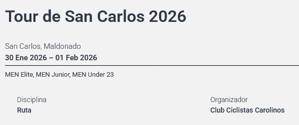 Más información sobre las competencias de ciclismo programadas en el siguiente enlace: https://federacionciclista.com.uy/calendario/